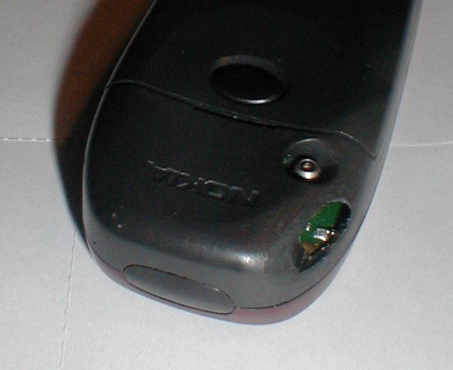You'll find some photos of my 6150 enclosed. They show how I did the modification. It works not that well as the original antenna according to "NetMonitor", the RX is about 5-10 dB weaker. But I don't mind - it looks cool and certainly is unique!